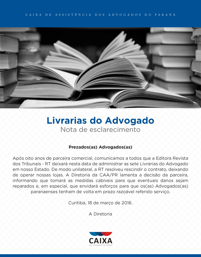 Nota de esclarecimento sobre as Livrarias do Advogado